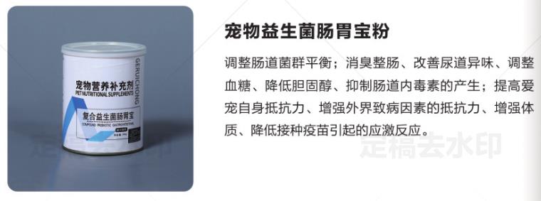 調整腸道菌群平衡;消臭整腸、改善尿道異味、調整血糖、降低膽固醇、抑制腸道內毒素的產生:提高愛寵自身抵抗力、增強外界致病因素的抵抗力、增強體質、降低接種疫苗引起的應激反應。